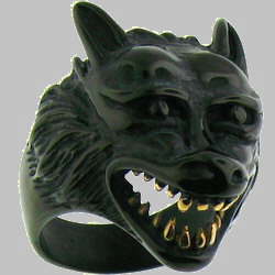 Stainless Steel Wolf Head Ring (Black)