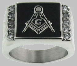Stainless Steel Masonic CZ Ring