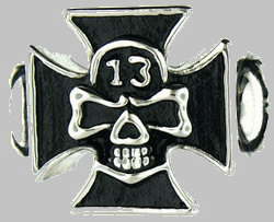 This ring combines an Iron Cross, a Skull and 13 into a single design.Dimensions = 25 mm x 25 mm (1" x 1")Weight = 31 grams