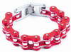 Red & White Stainless Steel Motorcycle Chain BraceletApprox 3/4" wide with fold clasp
