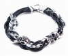 Stainless Steel Link Bracelet with Skulls at clasp and Leather LaceApprox 3/4" wide with hook clasp