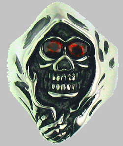 Stainless Steel Red CZ Eyes Reaper Ring