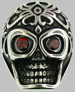 Stainless Steel Red CZ Eyes Skull Ring