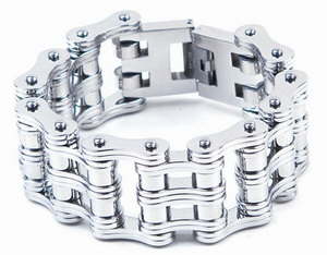 Heavy Duty Double wide Stainless Steel Motorcycle Chain BraceletApprox 1" wide with Fold clasp