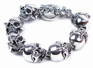 Heavy Duty Stainless Steel Bracelet features Skulls with Cyborg EyeApprox 3/4" wide with Hook clasp