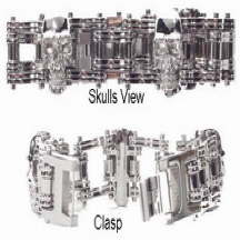 Stainless Steel bracelet with 3 medium size skullsApprox 3/4" width with easy fold clasp