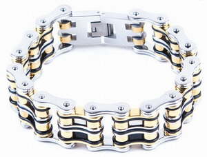 Black & Gold Stainless Steel Motorcycle Chain BraceletApprox 1-1/3" wide with fold clasp