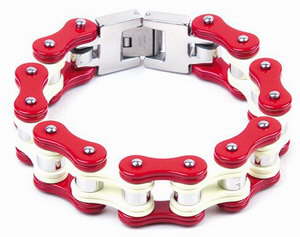 Red & White Stainless Steel Motorcycle Chain BraceletApprox 3/4" wide with fold clasp