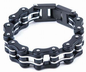 Heavy Duty Black & Stainless Steel Motorcycle Chain BraceletApprox 3/4" wide with fold clasp